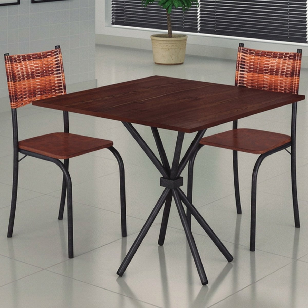 Dessa forma, composto por 3 componentes (tampo, base e 2 cadeiras), o kit aproveita ambientes pequenos sem abrir mão do conforto. Consequentemente, você transforma varandas, kitchenettes ou cantos de cozinha em espaços acolhedores para suas refeições.